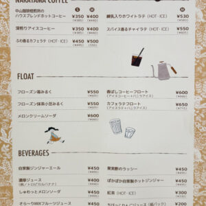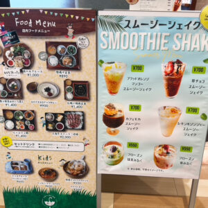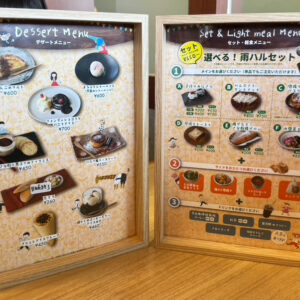 スイーツやドリンクが中心の構成で、軽食やテイクアウトにも対応されています。